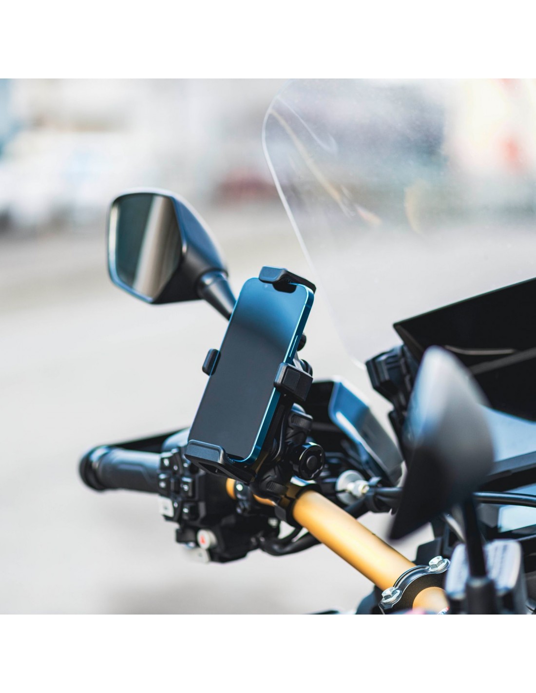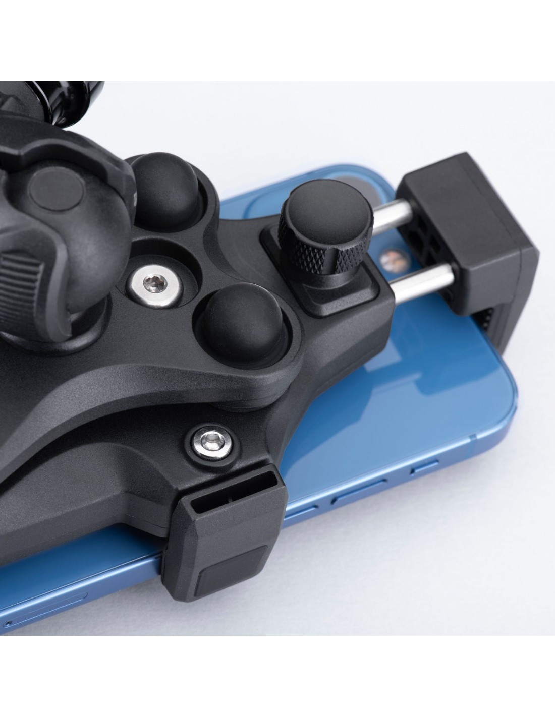 xEquipado con el sistema NO VIBRATION, protege el smartphone de la tensión y lo asegura de manera óptima gracias a los anclajes de gancho, que lo hacen universal para cualquier tipo de teléfono.