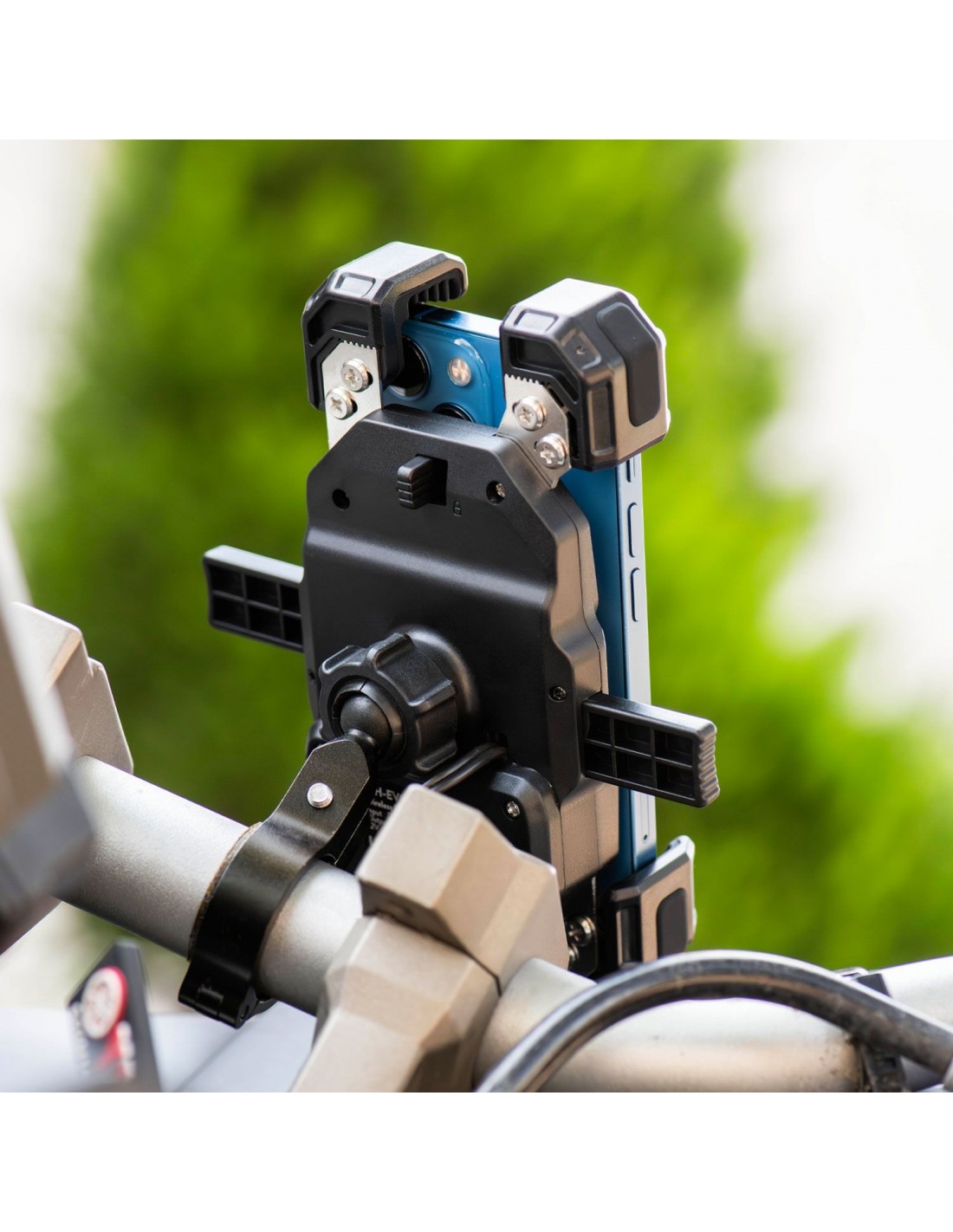 El FOUR HOOKS  SECURITY SYSTEM garantiza la fijación más segura del smartphone al soporte. ​