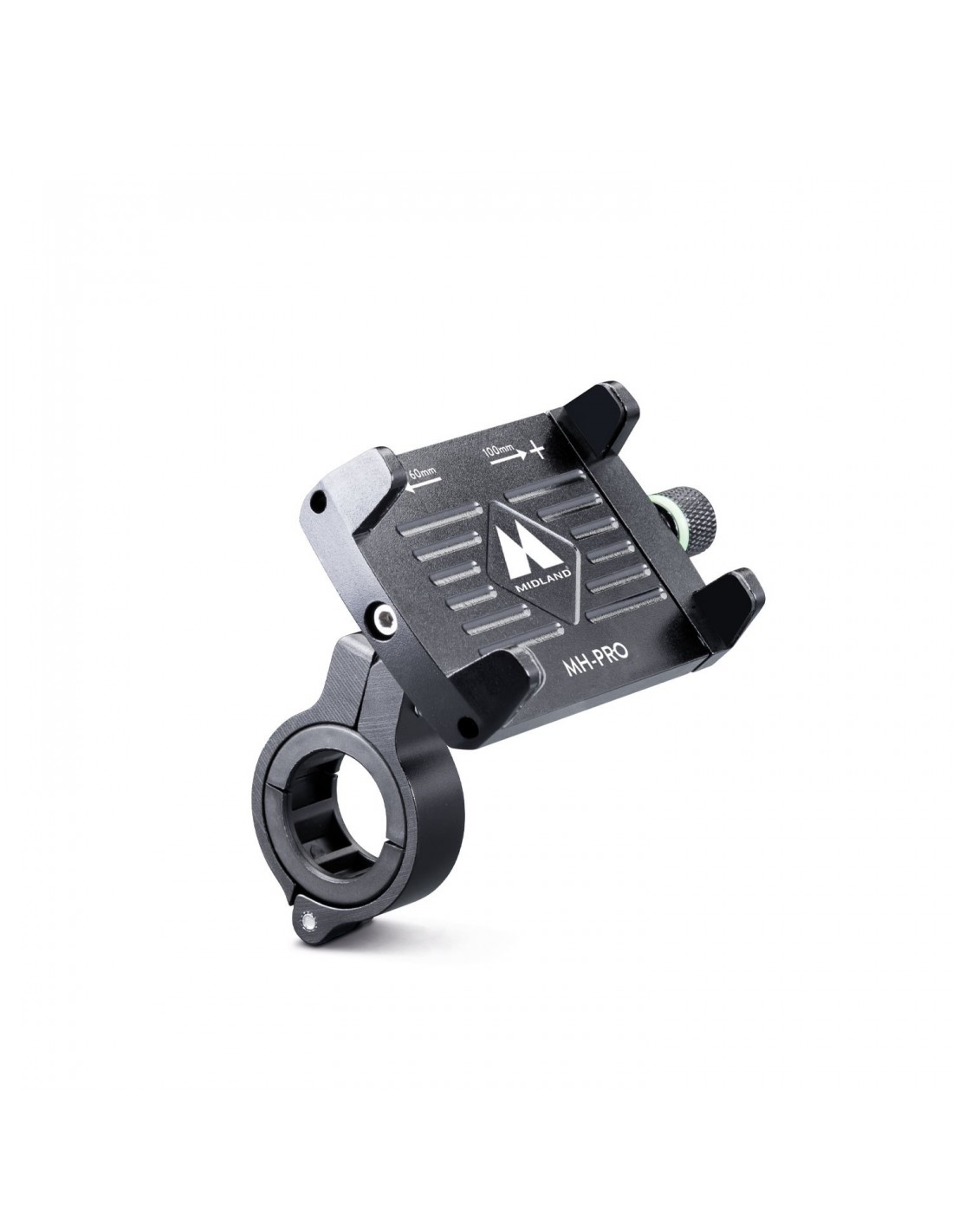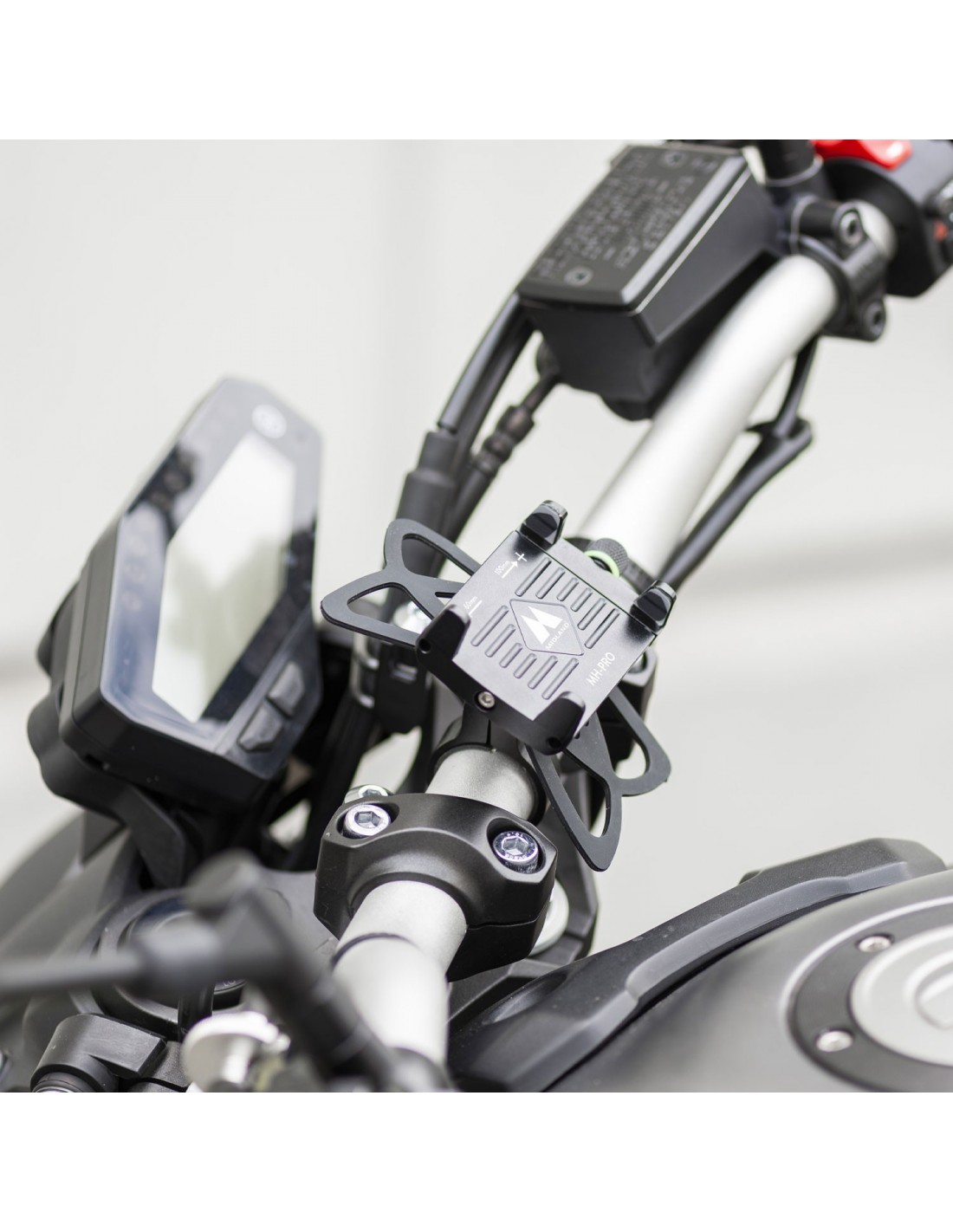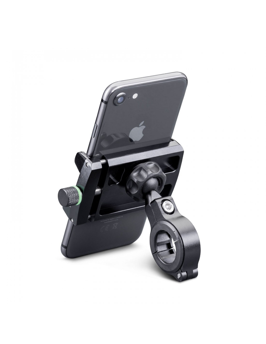 Soporte de smartphone de aluminio para manillares de 22 a 32mm. Para carcasas hasta 6,2", incluye rejilla de seguridad.