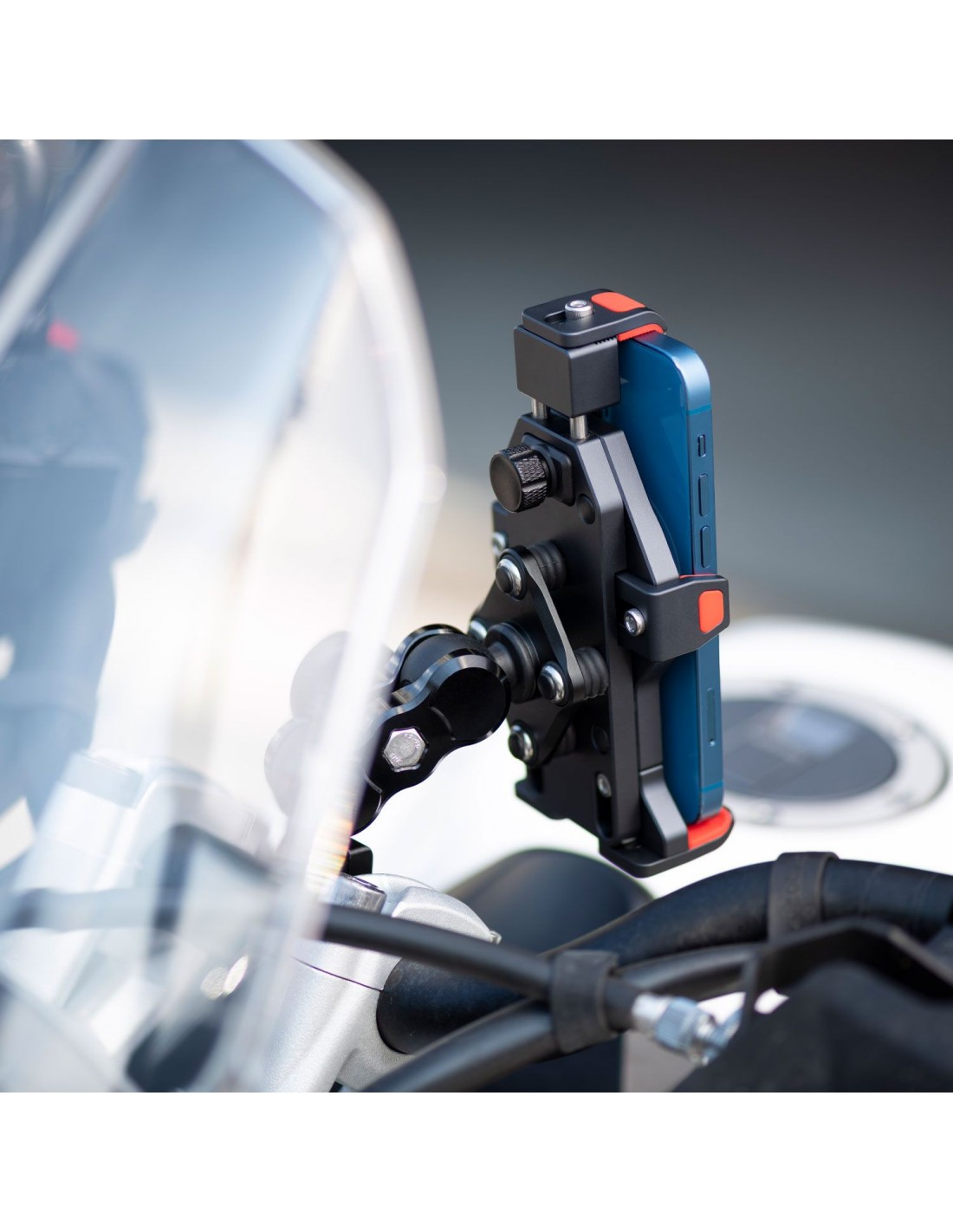 El nuevo soporte NO VIBRATION para smartphones está dotado de un sistema de amortiguación capaz de atenuar las vibraciones y evitar tensiones y daños en el teléfono. Sencillo y seguro gracias a los ganchos elásticos, es capaz de adaptarse a cualquier tipo de dispositivo.