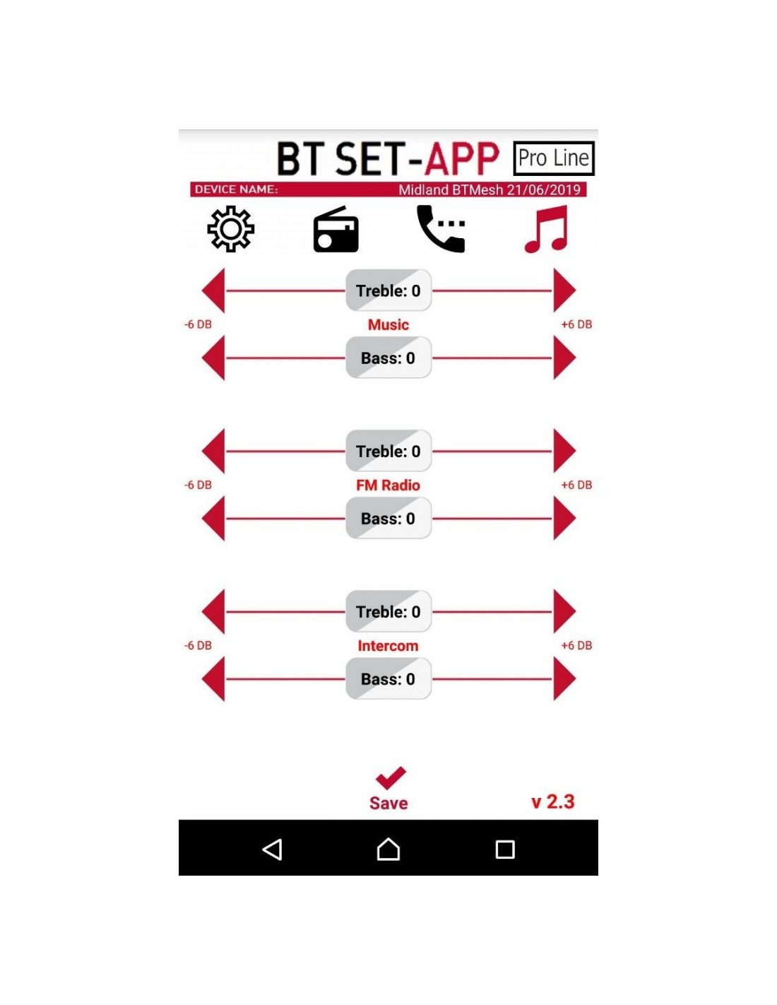 - Ajuste de agudos / medios / graves para mejorar la calidad de audio del intercomunicador, la música y la radio FM