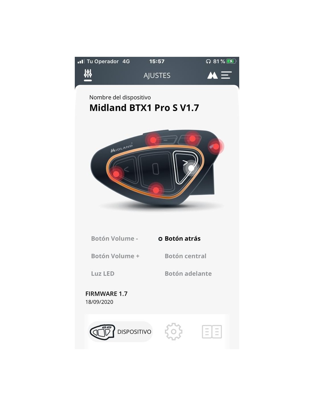 Con la aplicación BTPRO SET podrás configurar y controlar los ajustes de tu intercomunicador Bluetooth de Midland. La interfaz es muy sencilla e intuitiva y te permite personalizar tu dispositivo configurando las diferentes funciones. Simplemente empareja el teléfono con el intercomunicador Midland a través de Bluetooth y los dos dispositivos, ambos encendidos, se conectarán inmediatamente.