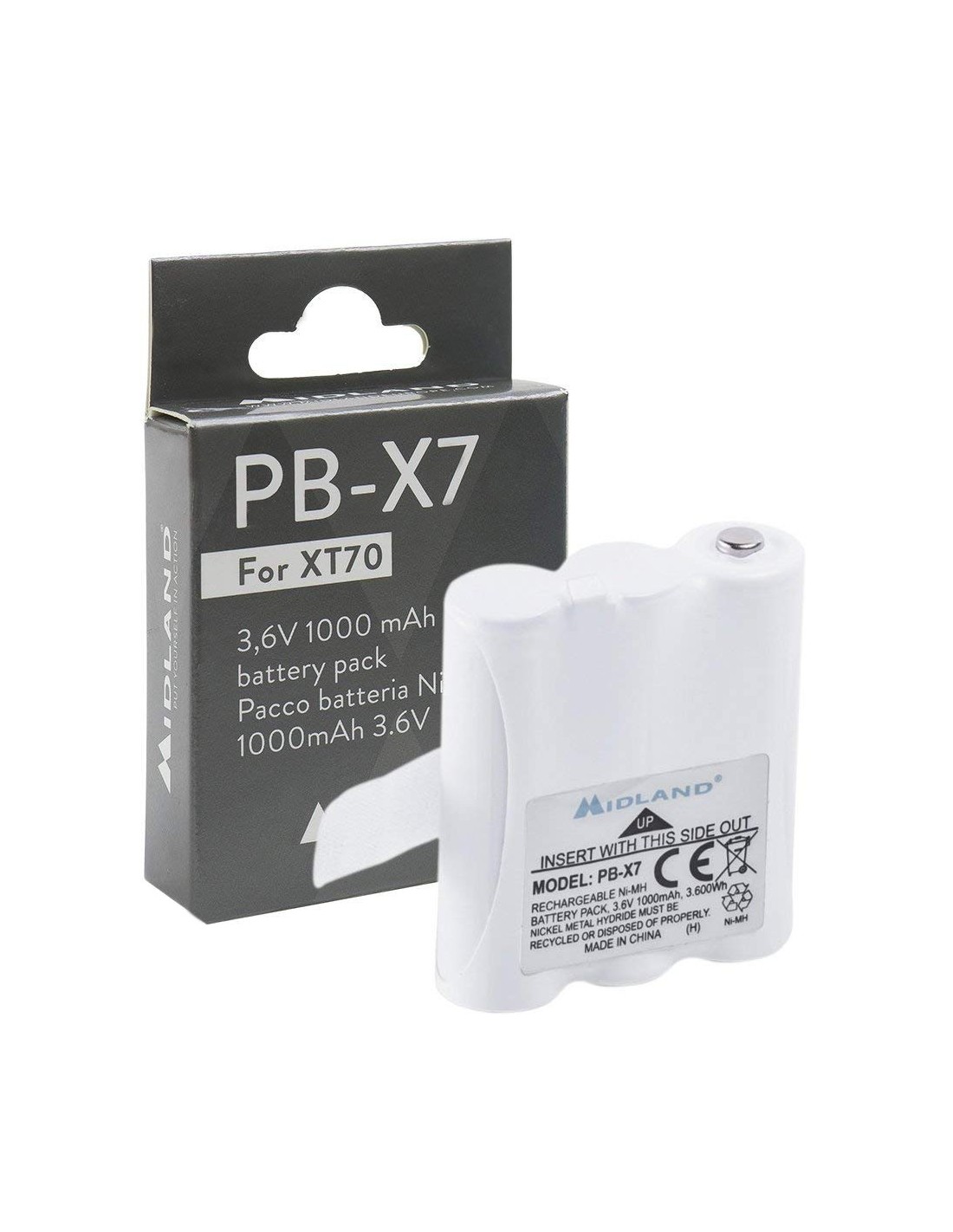 Pack de baterías recargables de recambio para tu walkie talkie Midland XT70. Baterías de NiMH de 1000mAh, con las que disfrutarás de unas 18 horas de autonomía.