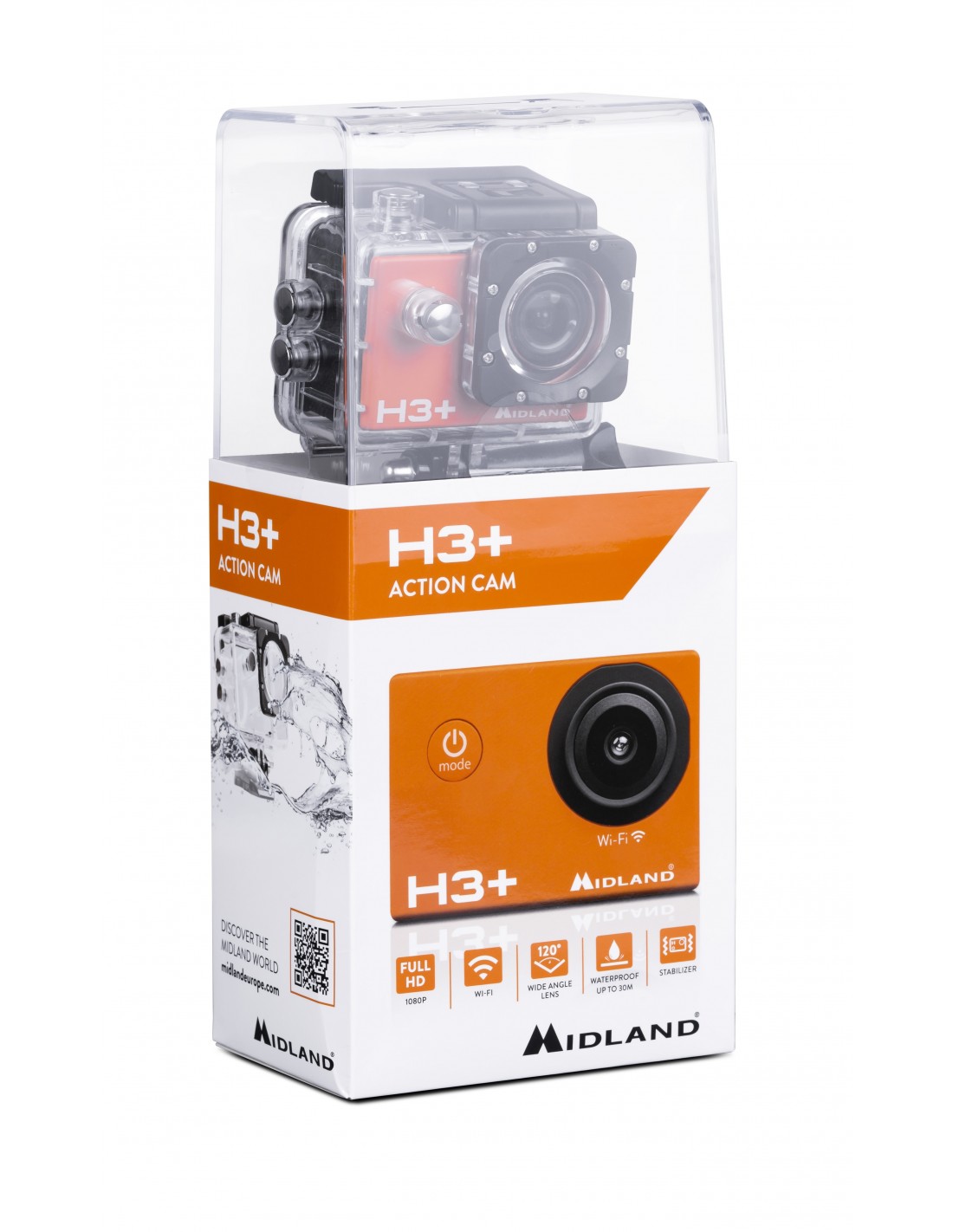 Midland H3+ es la cámara al alcance de todos. Completa con Wi-Fi integrado, Full HD, estabilizador de imagen y carcasa impermeable. La cámara de acción para todos tus momentos más locos.
