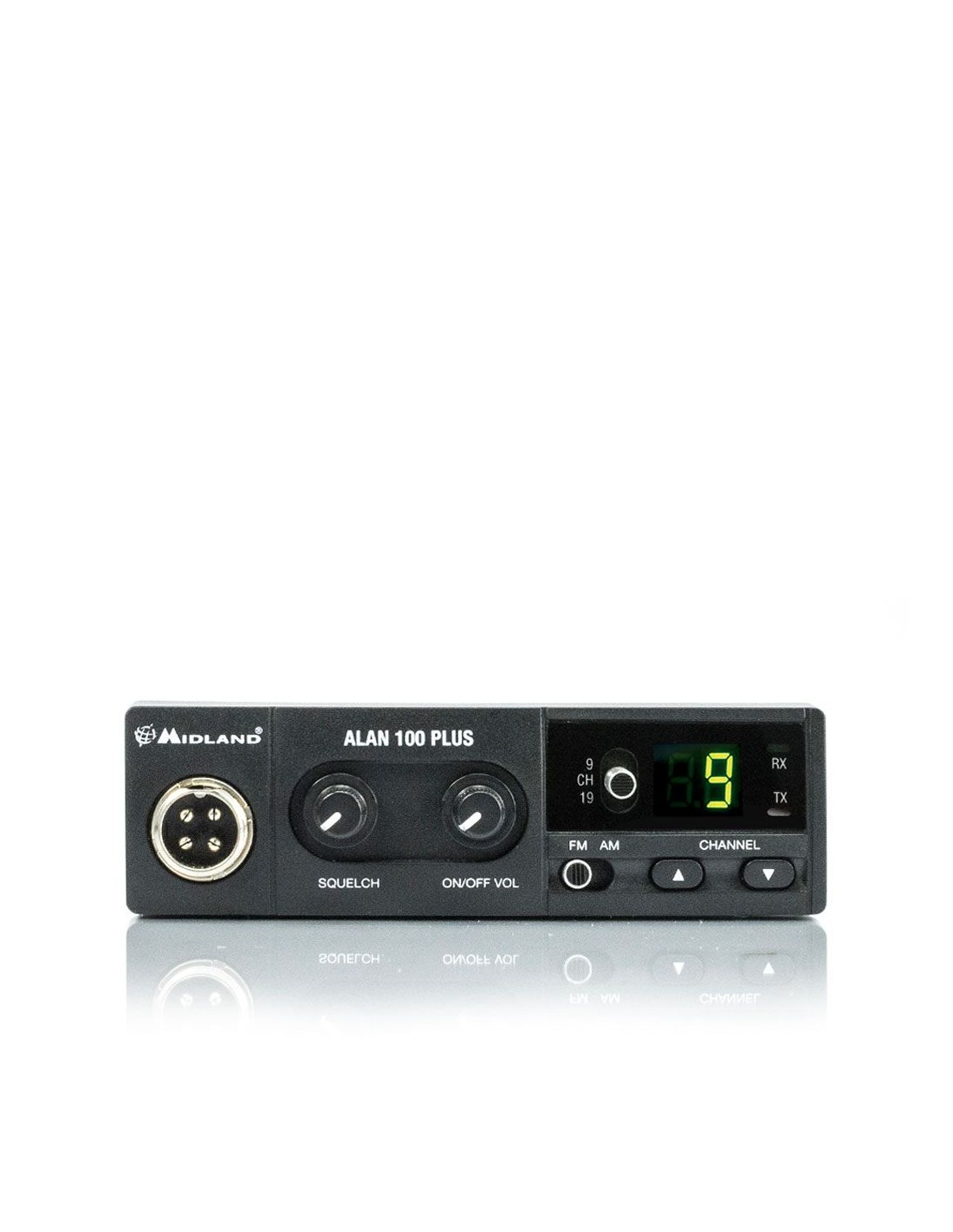 Esencial, compacta, fácil de usar y también de instalar gracias al kit opcional en el compartimento DIN de tu vehículo: así es la Alan 100 Plus B. La banda es AM - FM y tiene Squelch. Dispone de pantalla para visualización de canales -incluidos los de emergencia (9-19)- con un LED que emite señal luminosa para recepción y transmisión. El frontal se completa con los botones Arriba-Abajo. Tiene un conector para altavoz externo y el conector del micrófono es de 4 pin. ¿Ya estás en camino?