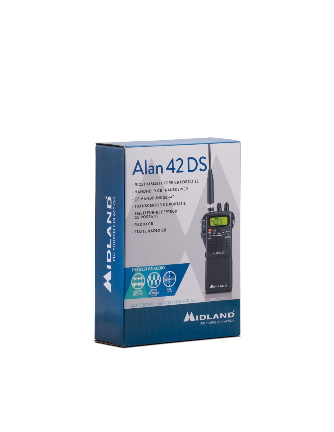 El transceptor CB portátil por excelencia, ALAN 42 DS, revisado para hacer que la experiencia de audio sea única, está equipado con squelch digital y filtros ANL y noise blanker, que eliminan el ruido causado por fuentes externas o por el vehículo.