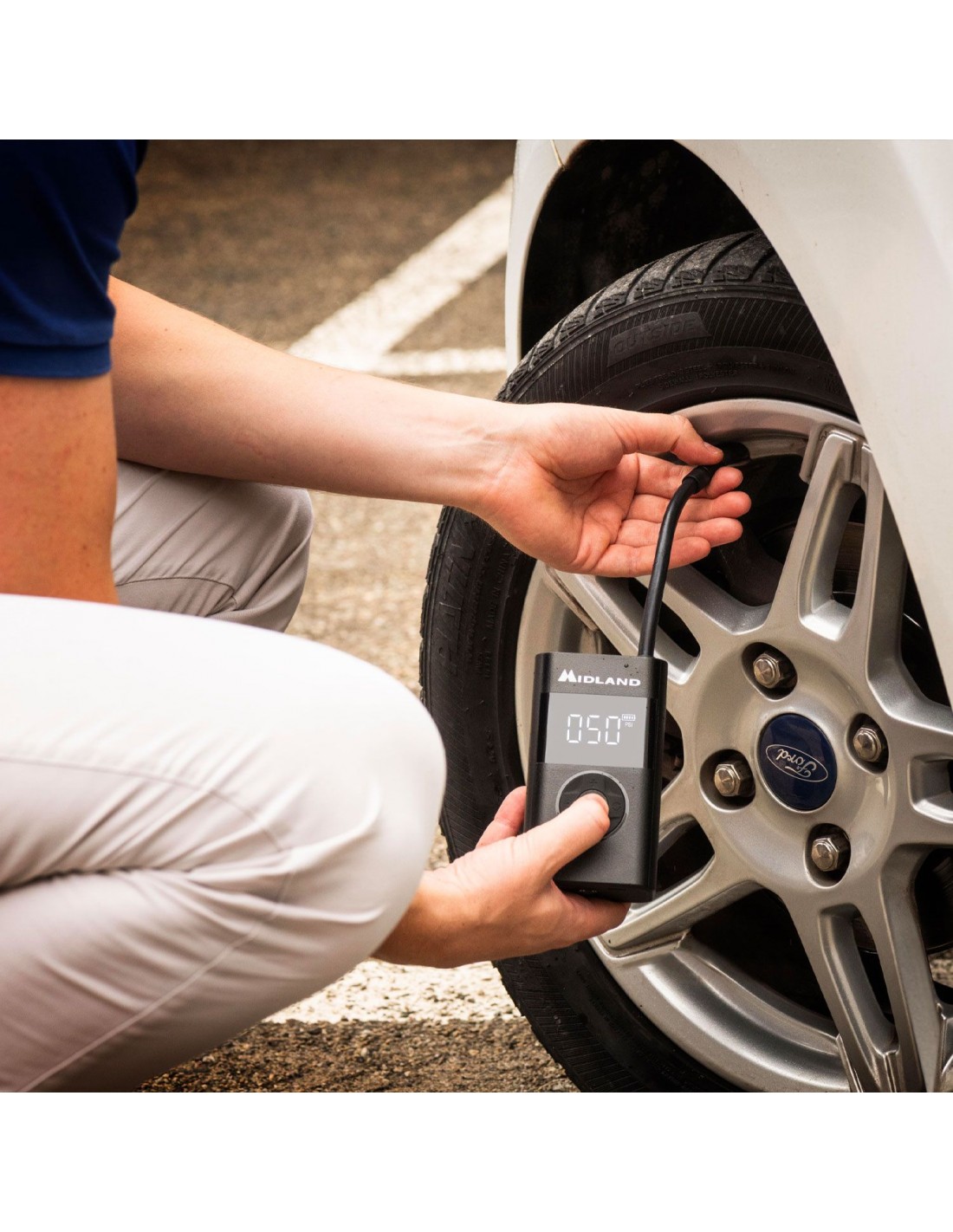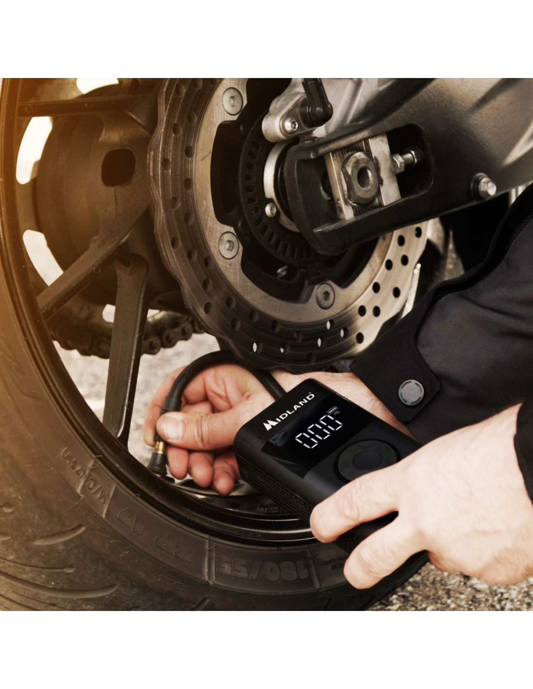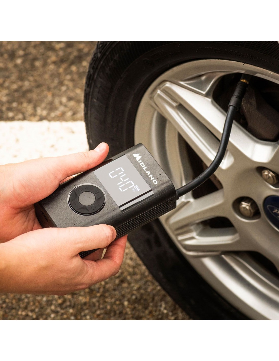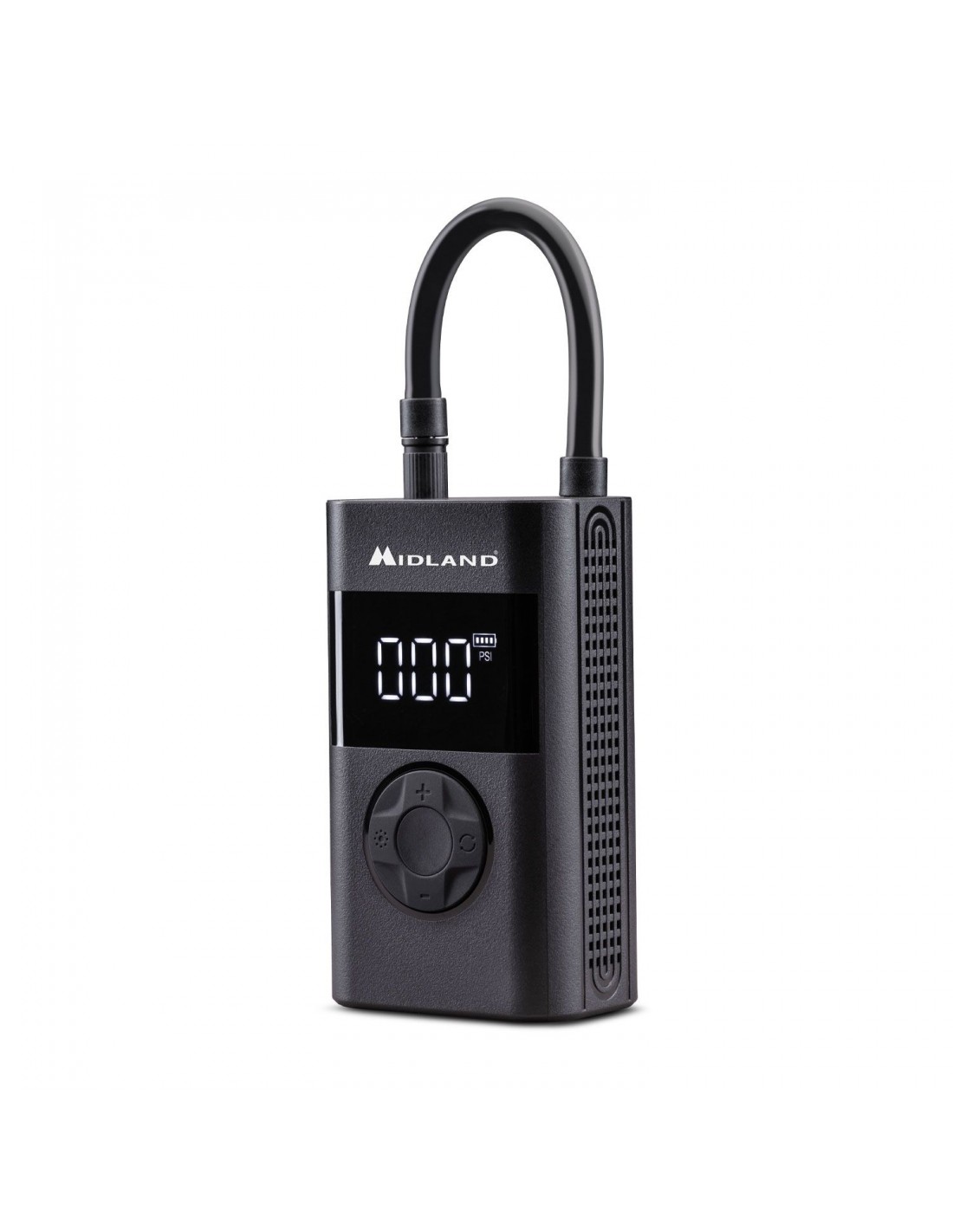El compresor está equipado con una pantalla LCD digital que muestra la presión de los neumáticos en tiempo real. Esto permite un control preciso durante el proceso de inflado, evitando el riesgo de inflar demasiado o demasiado poco los neumáticos.