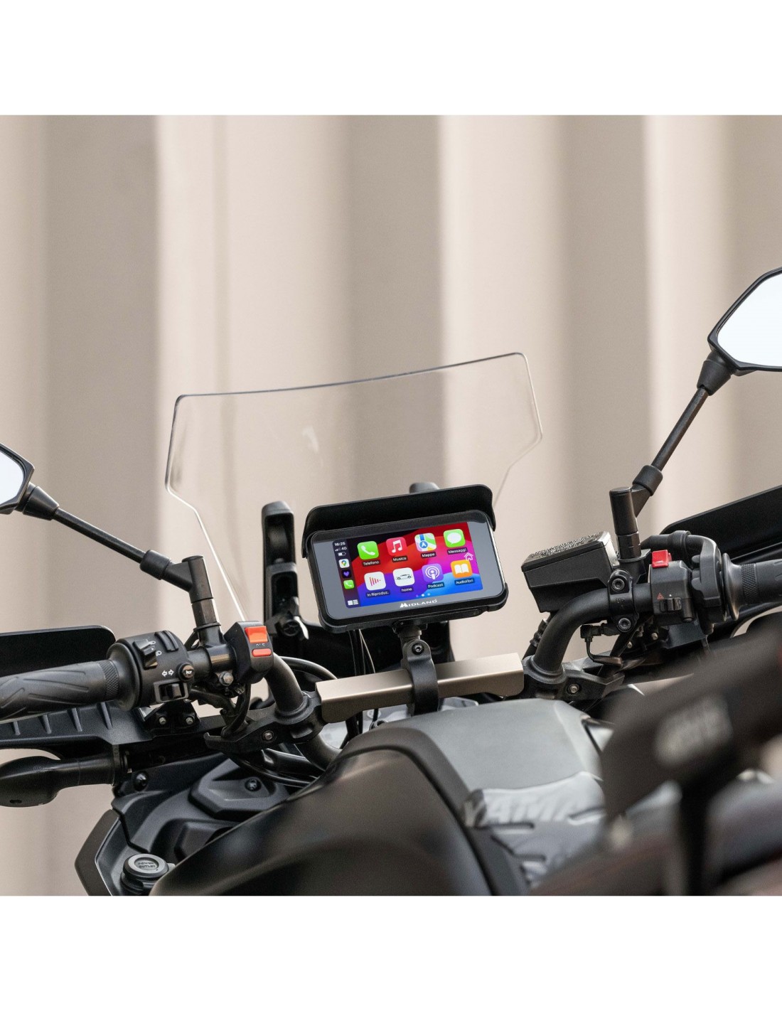 xBikePlay Guardian es la pantalla táctil capacitiva impermeable de 5 pulgadas (también utilizable con guantes) con función "mirroring" que duplica la pantalla del smartphone (iOS o Android) para reducir las distracciones mientras se conduce en moto. Gracias a la compatibilidad con comandos de voz, accede fácilmente a todas las funciones que necesitas sin quitar la vista de la carretera (Asistente de Google). BikePlay Guardian también está equipado con una cámara dual delantera y trasera con resolución QFHD que garantiza un seguimiento constante del entorno, incluso en condiciones de poca visibilidad.