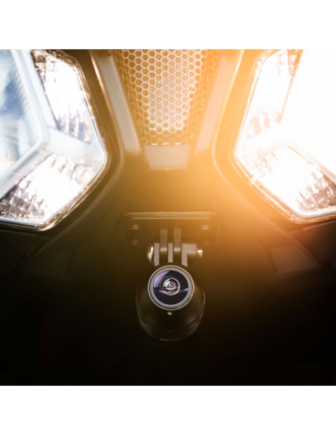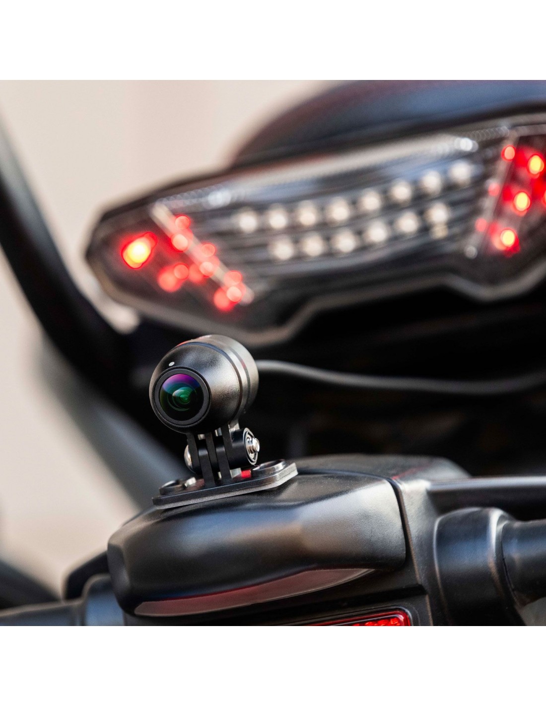 gracias a la doble videocámara con grabación continua y visión completa delantera y trasera de la moto.