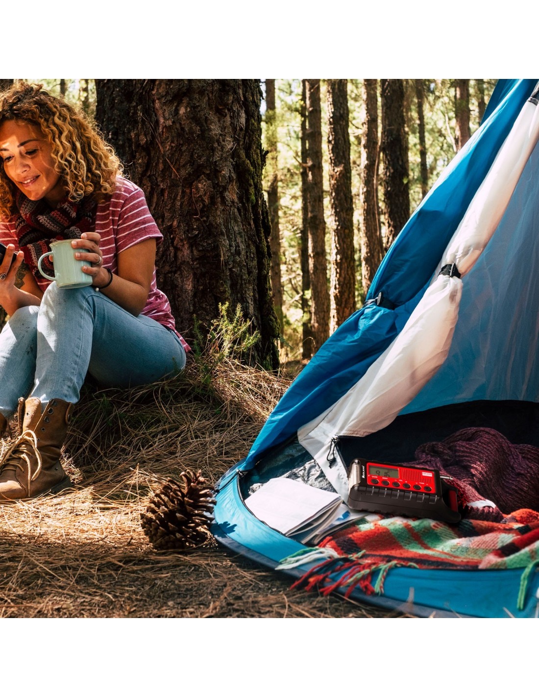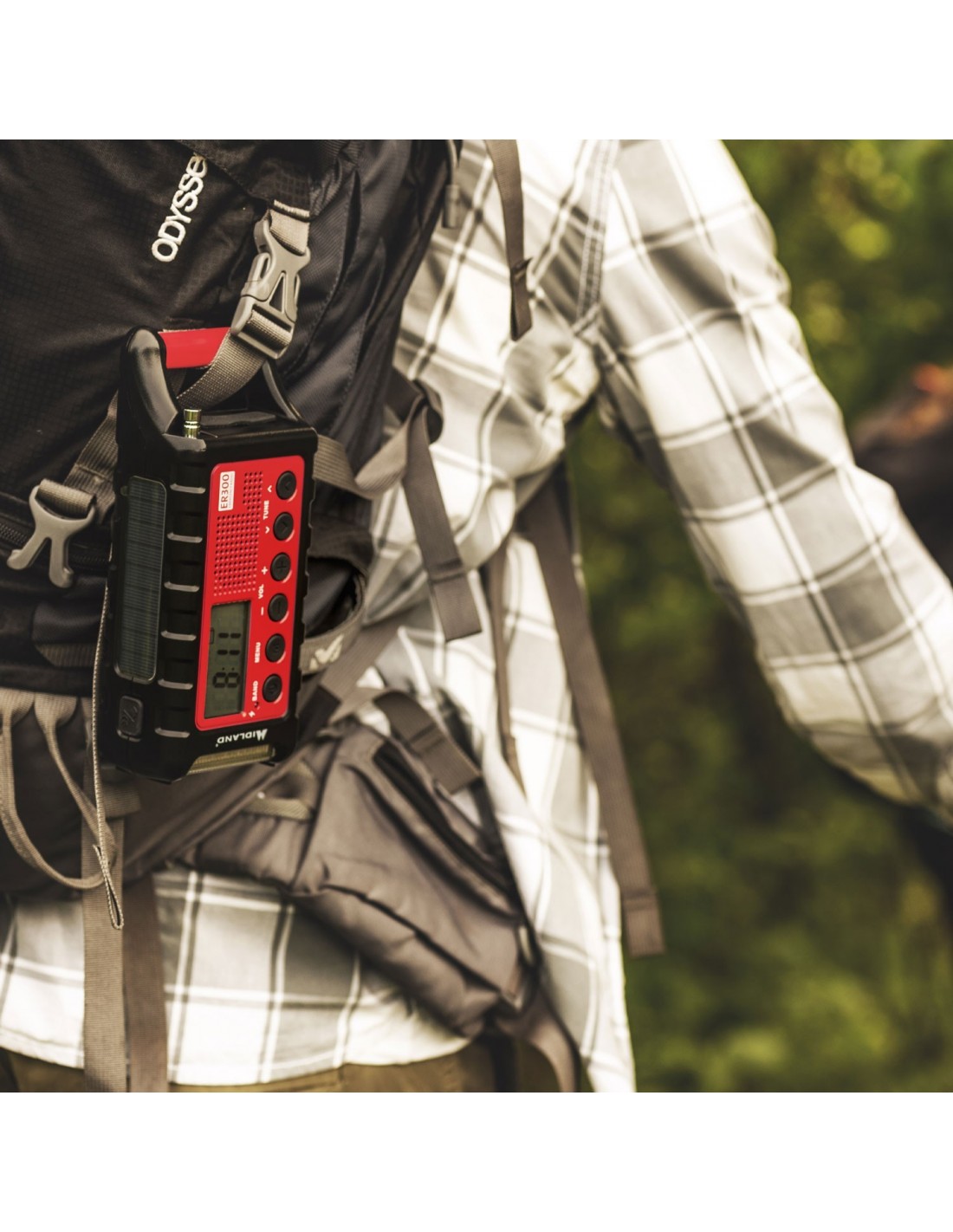 Recarga fácilmente dispositivos portátiles gracias al ER300, un dispositivo de emergencia indispensable (incluye power bank, linterna LED, receptor de radio AM/FM, silbato ultrasónico para perros y la posibilidad de recargar la batería interna también manualmente con dínamo, paneles solares, pilas o cable USB) .