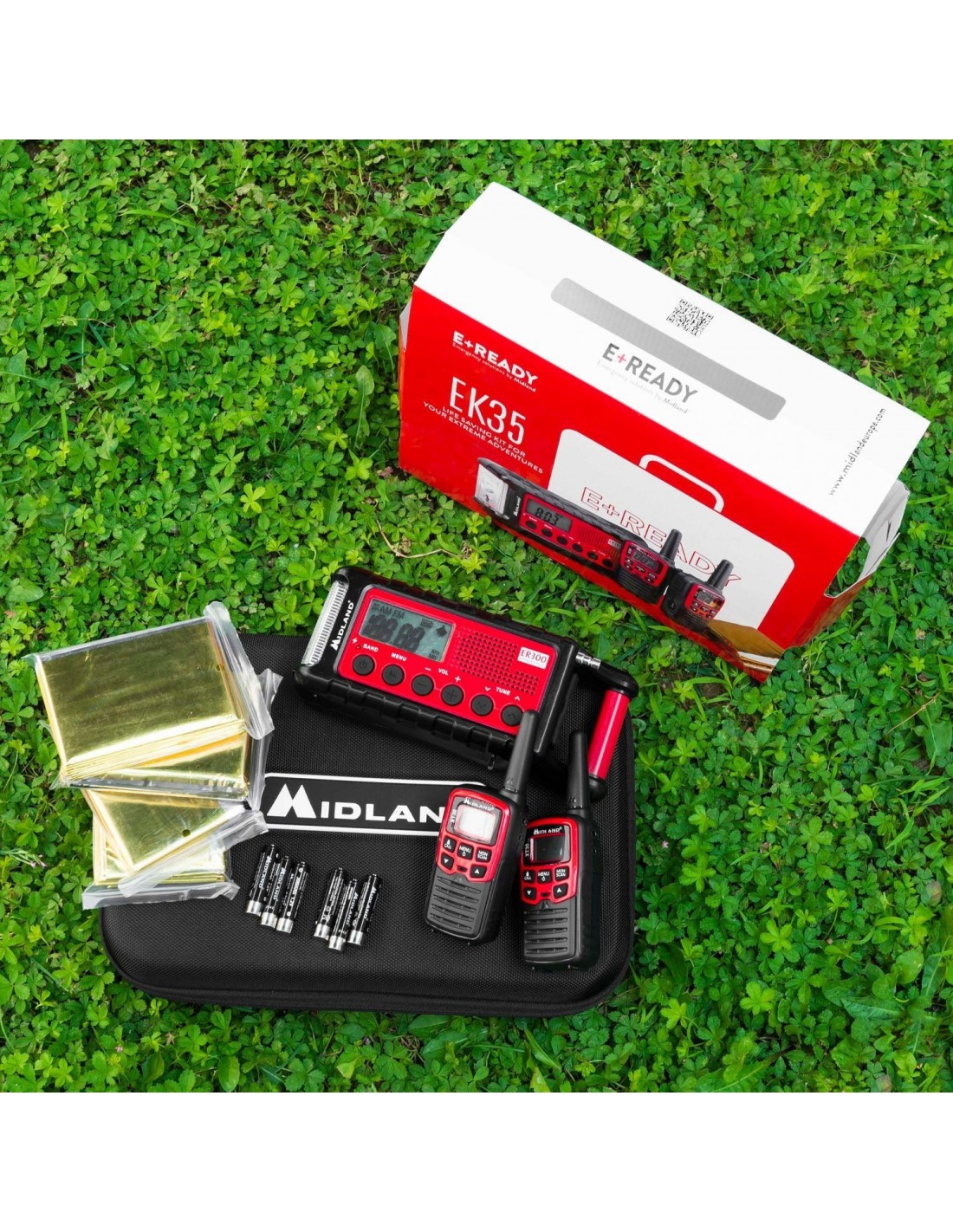 Kit de emergencia en un estuche que contiene: 2 walkies PMR446 XT30, 2 juegos de pilas recargables AAA, el conocido y versátil Power Bank de emergencia ER300, cables de conexión y 4 mantas térmicas.