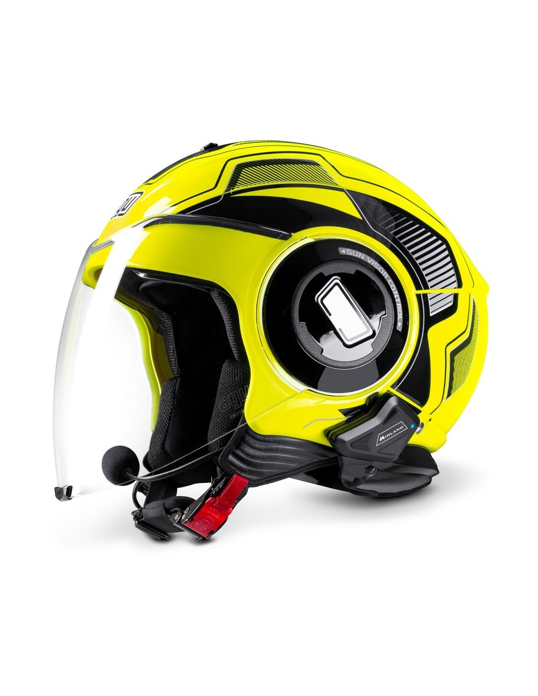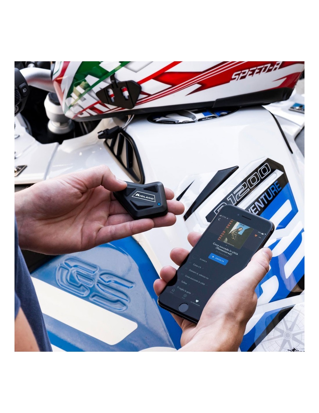 BT MINI es compatible con todos los sistemas integrados de control y conectividad de los principales fabricantes de motocicletas (BMW, KTM, Ducati) y se conecta a un GPS o smartphone u otro intercomunicador de Midland.