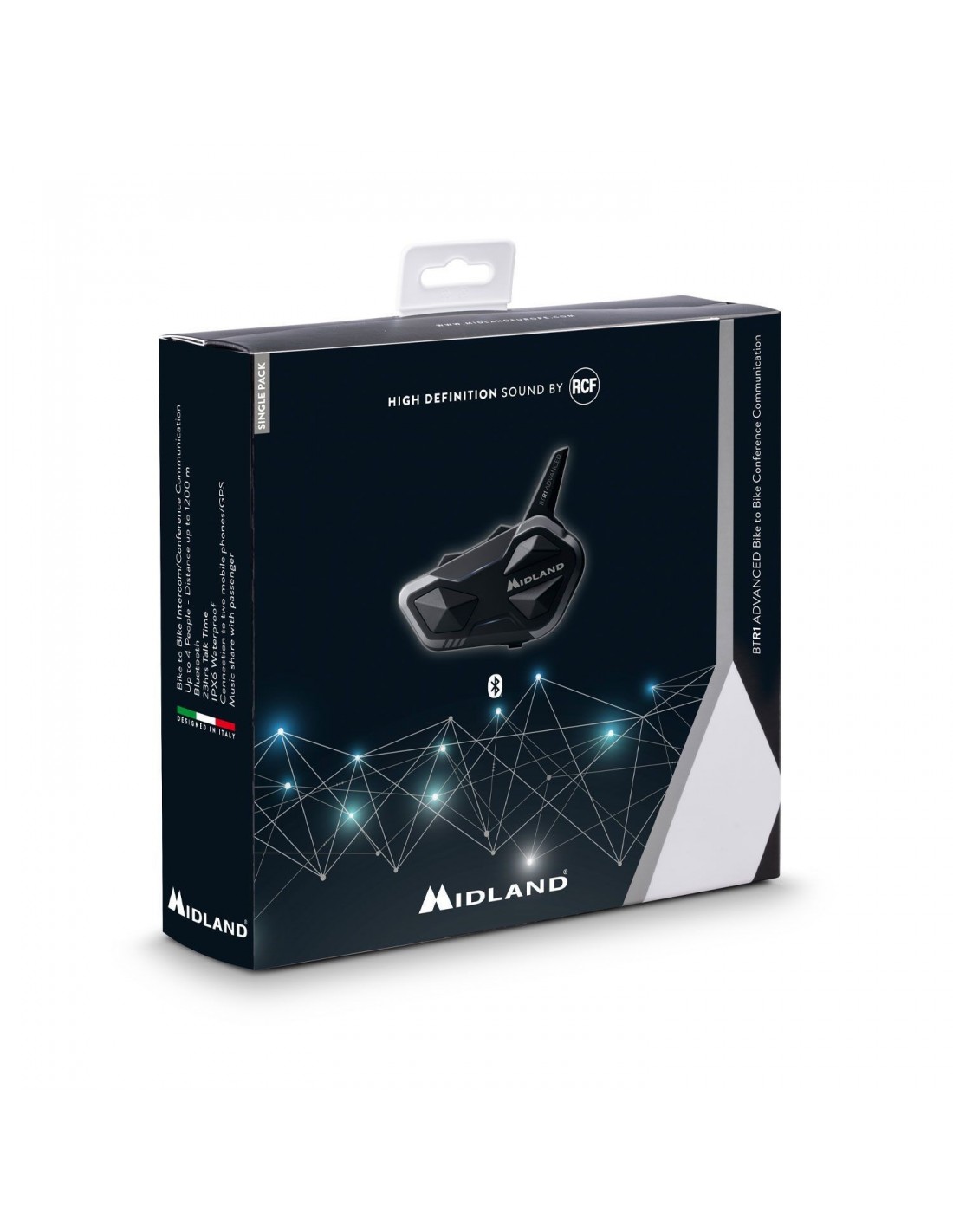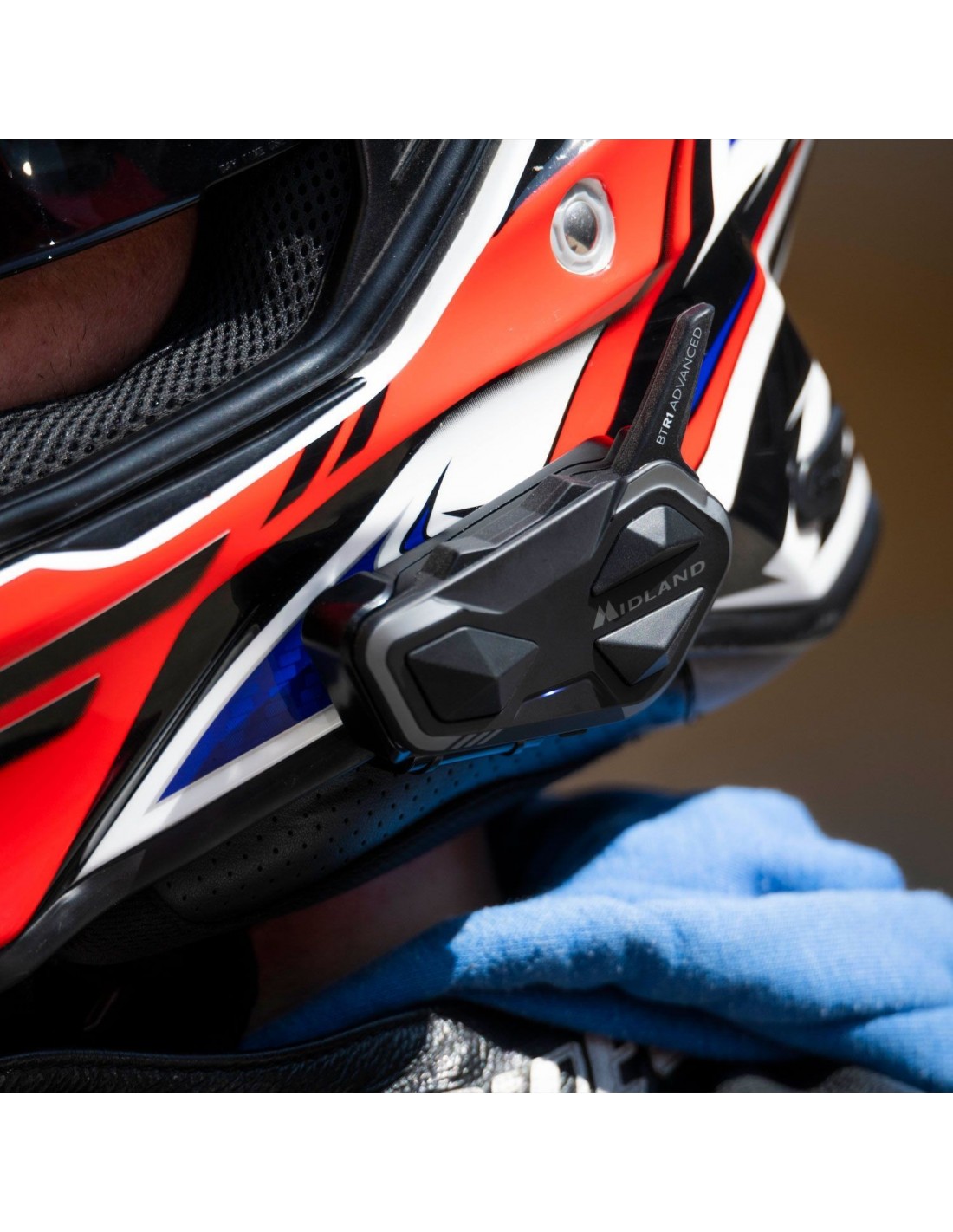 BTR1 ADVANCED resulta el intercomunicador Midland con la mejor relación precio/rendimiento. Adelantado a los demás de su categoría, está equipado con una tecnología que en modo Conferencia permite que 4 personas se comuniquen entre sí hasta una distancia de 1.200m entre moto y moto.