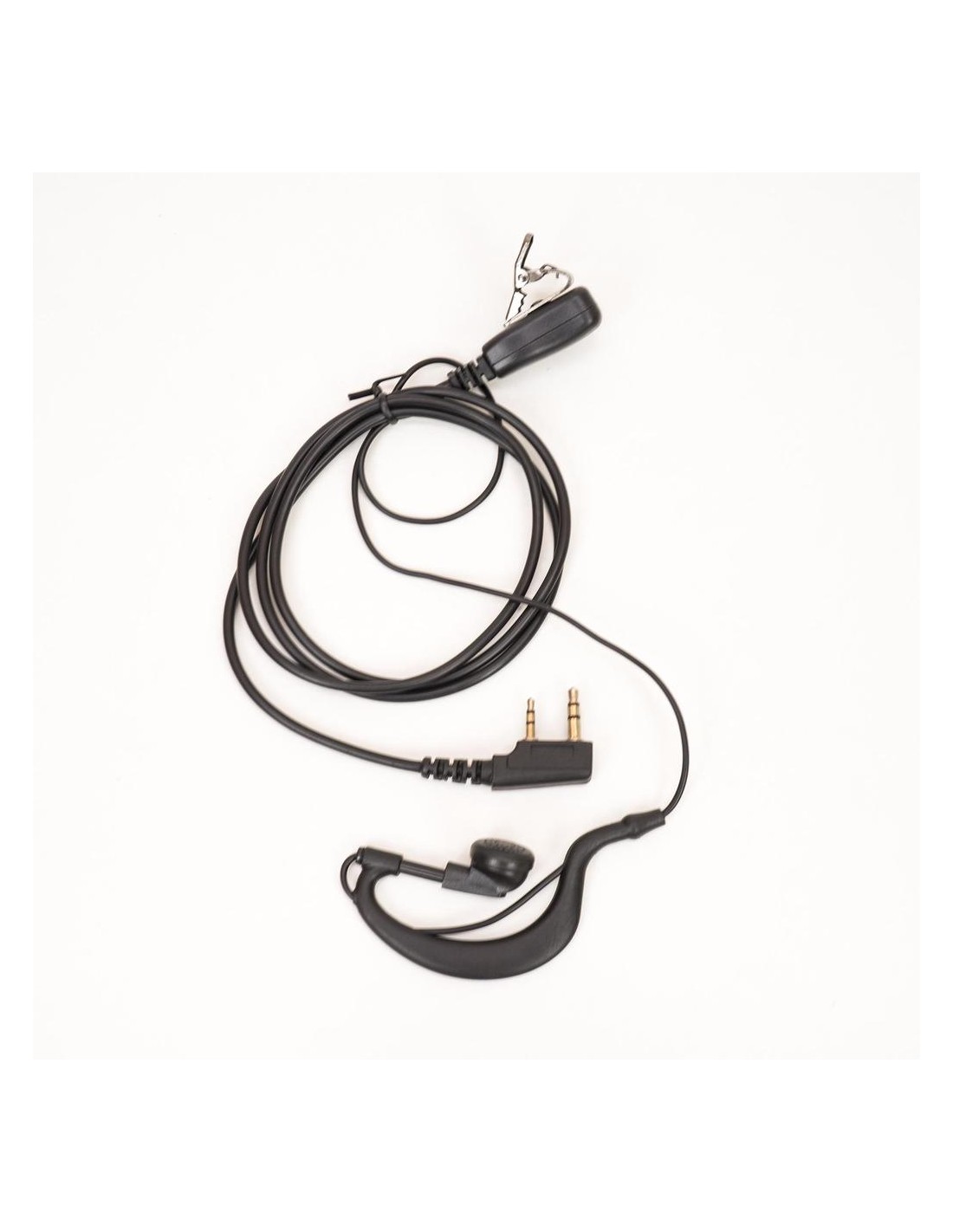 Micrófono con botón PTT y auricular regulable.