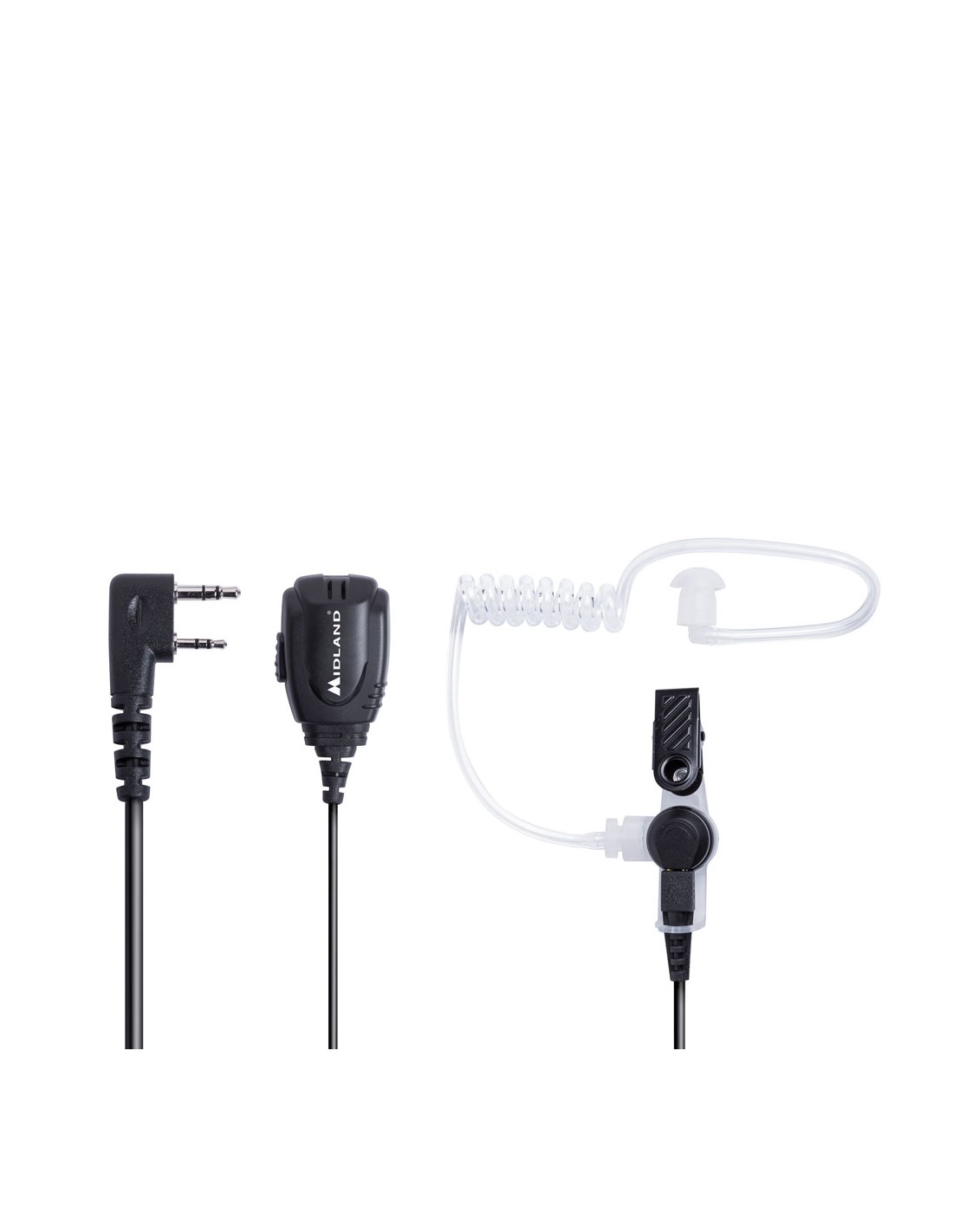 Auricular neumático con micrófono y PTT incluido, permite comunicarte con tu walkie talkie Midland con las manos libres, podrás centrarte en tu actividad con comodidad sin necesidad de tocar el walkie talkie.