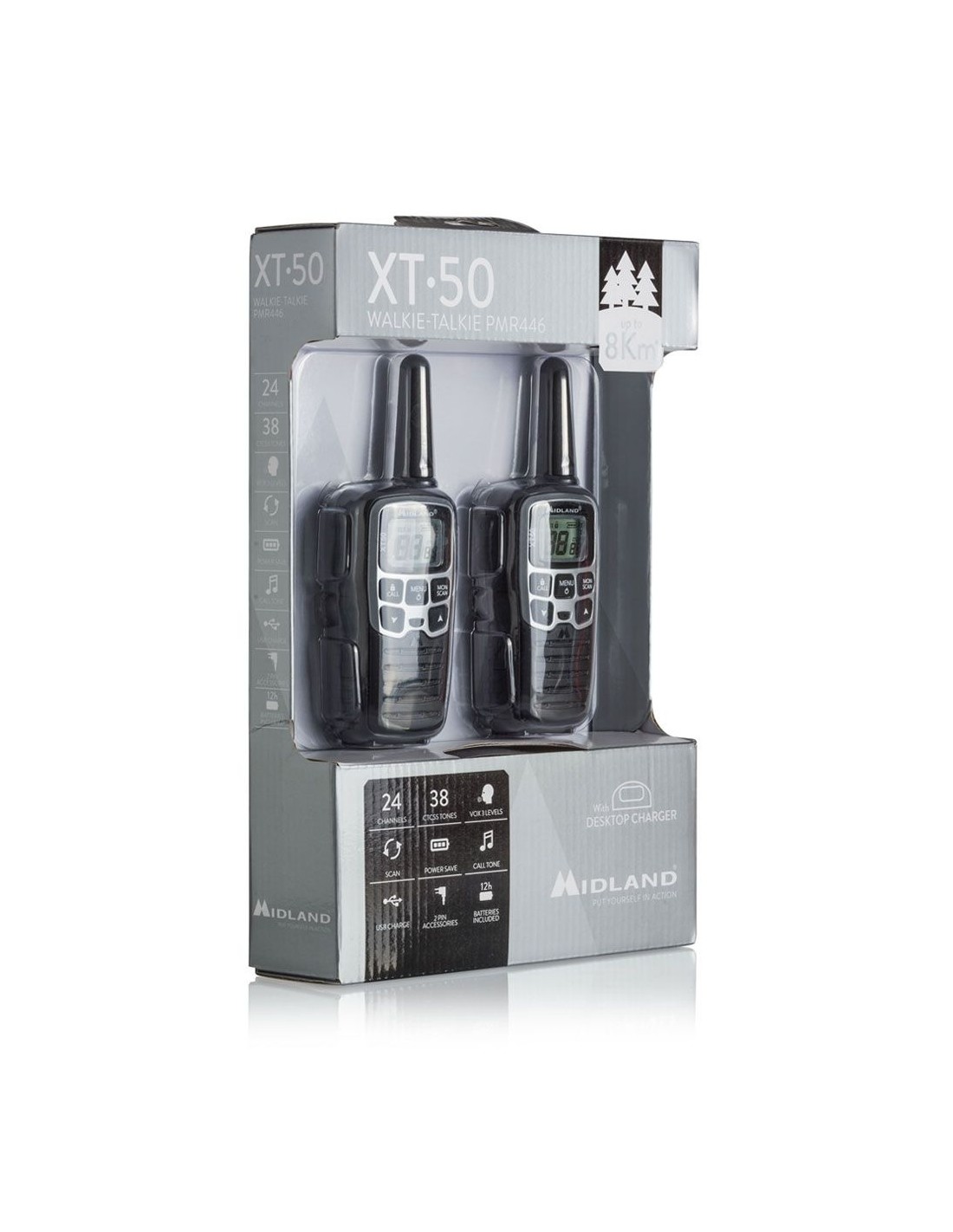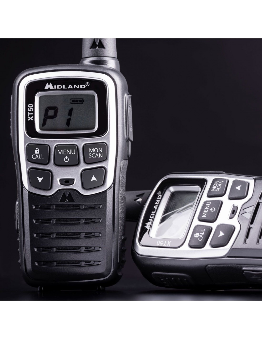 24 canales, 38 tonos, comunicaciones de hasta 8 km y 12 horas de autonomía son solo algunas de las características que hacen del walkie talkie Midland XT50 una auténtica joya de las radiocomunicaciones libres.