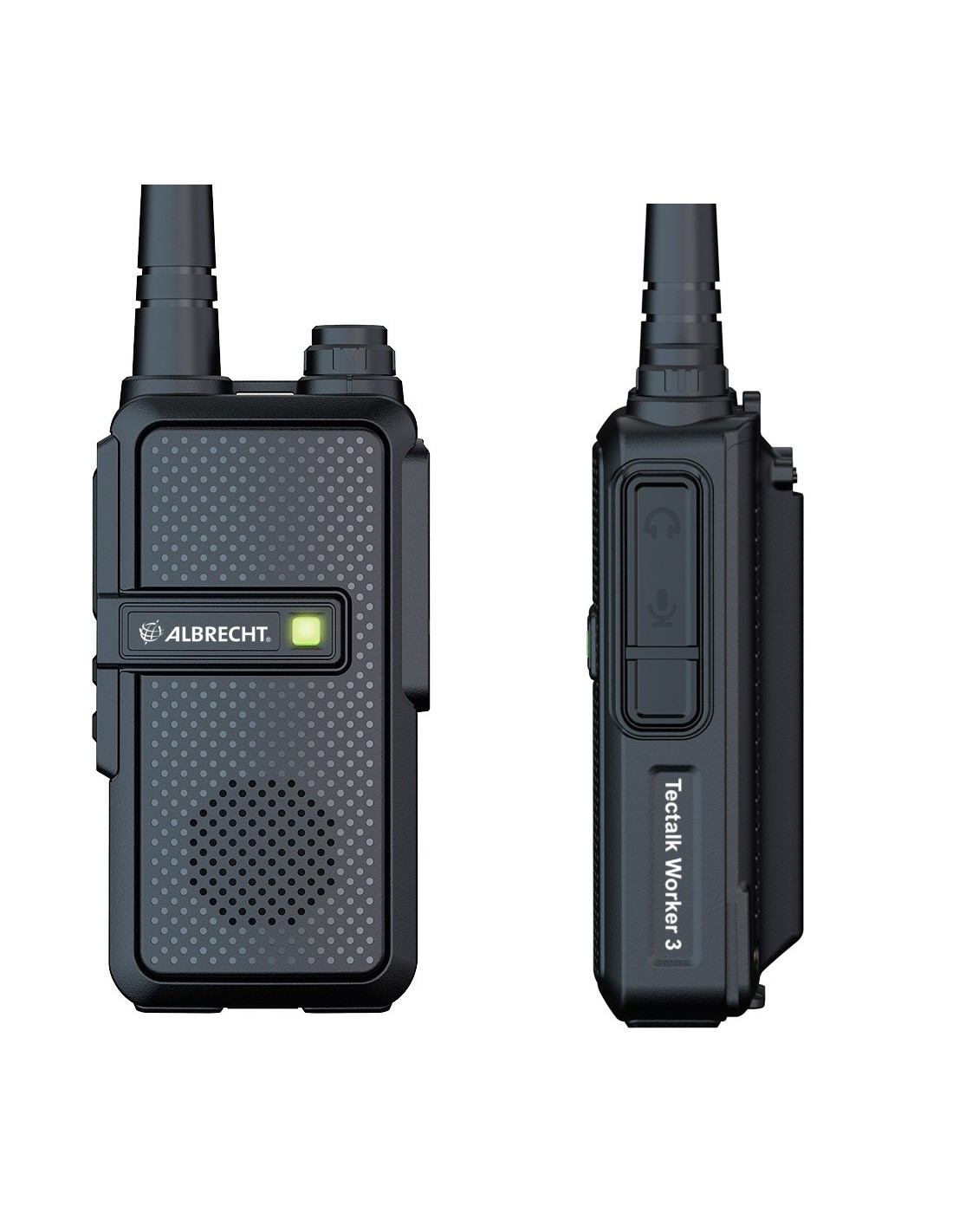 Albrecht Tectalk Worker 3 tiene función manos libres, certificación a prueba de polvo y salpicaduras y un chasis extremadamente robusto y ergonómico, con un PTT accesible incluso con guantes o manos húmedas. Características que la hacen perfecta para trabajos duros en exteriores, por ejemplo, en obras de construcción.