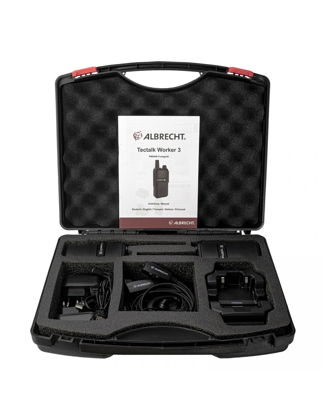 Albrecht Tectalk Worker 3 tiene función manos libres, certificación a prueba de polvo y salpicaduras y un chasis extremadamente robusto y ergonómico, con un PTT accesible incluso con guantes o manos húmedas. Características que la hacen perfecta para trabajos duros en exteriores, por ejemplo, en obras de construcción.